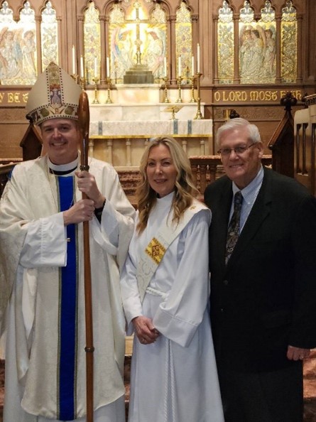 The Rev. Deacon Diane Cox of Batavia with Bishop Sean Rowe.