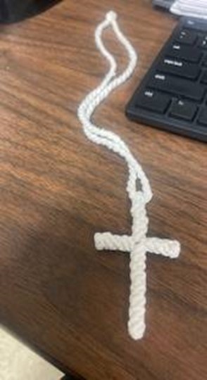 A cross made by an incarcerated individual for Diane Cox, she says.